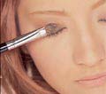PROCESS→画好上眼睑的线条之后,在眼睛边缘涂上褐色。包围住眼睛,再用刷子混合褐色和金色,涂在眼窝处。